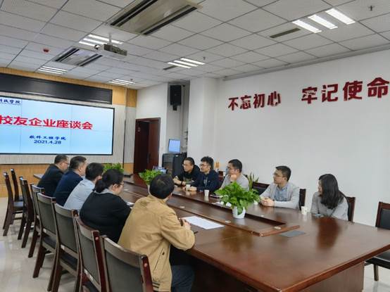 参观之后,软件学院徐志国书记、曾岳院长、徐斌副书记、系主任洪蕾和李亚志老师在科技楼2—325会议室与崔总和任总进行了热情的座谈交流。校友们感谢学院的培养,对学院近几年取得的成绩表示祝贺,希望母校培养更多的优秀学生,企业愿意每年优先提供岗位给母校的毕业生。双方还就学科建设、专业建设、人才培养、校企合作、大学生创新创业等方面的深度合作进行了交流,校友企业现场填写了学院人才培养企业调研表,对学院的人才培养提出许多建设性意见。学院将进一步加强与校友企业的联系与合作,培养更多符合企业需求的新型应用型人才。