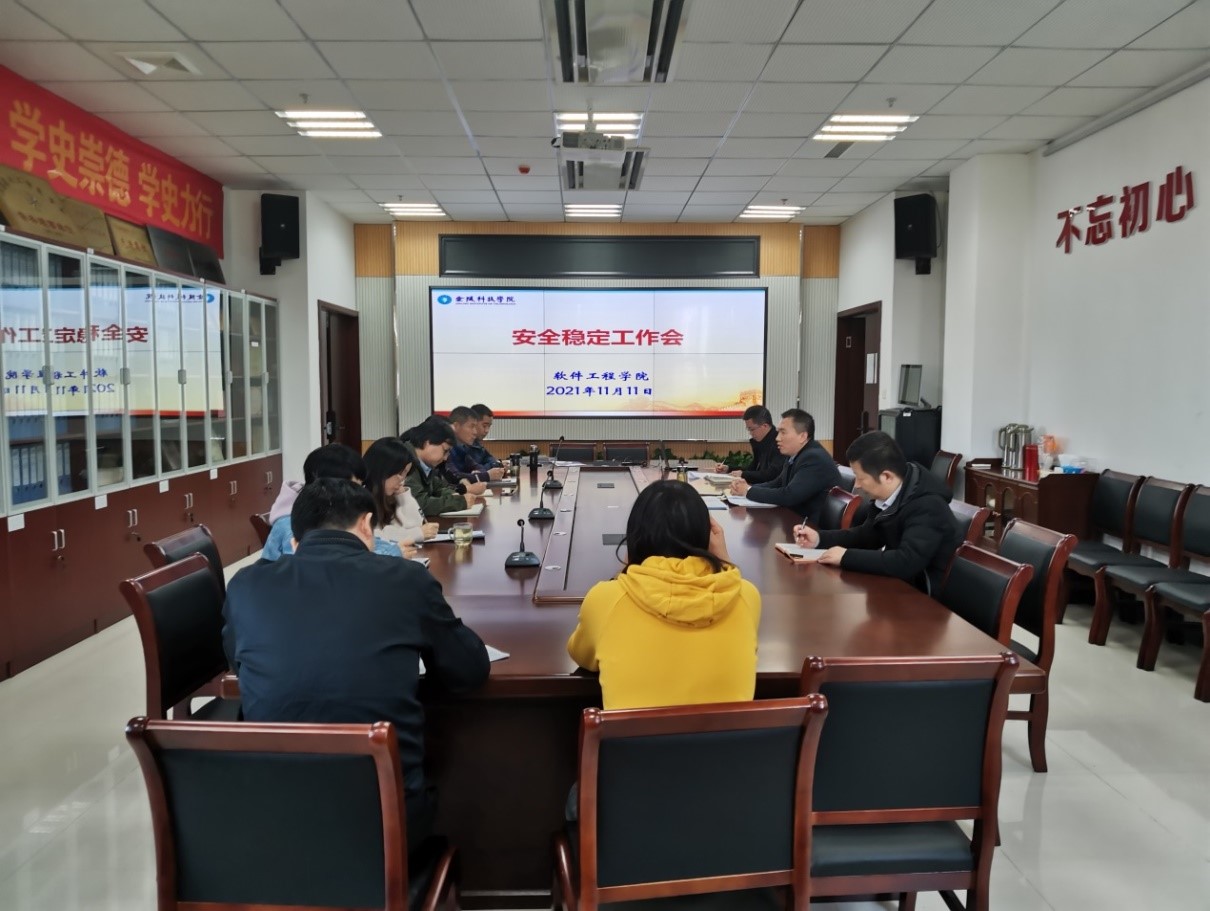 11月11日下午,必赢437官方网站在科技楼2-325会议室召开安全稳定工作会,学院党委书记徐志国、副书记徐斌、副院长胡勇、各系、中心、科室主任参加会议,会议由徐志国主持。