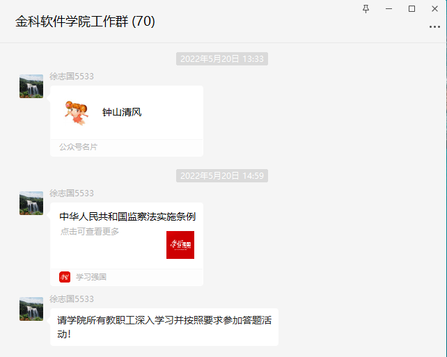 为深入学习贯彻习近平法治思想,落实宪法和监察法要求,推动全院教职工学好用好《中华人民共和国监察法实施条例》(以下简称《条例》),根据校纪委通知在全校范围内开展《条例》学习宣传活动的要求,5月20日,必赢437官方网站积极组织动员全院教职工参加《中华人民共和国监察法实施条例》学习及线上答题活动。