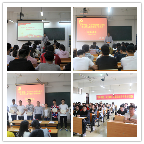 4月20日-5月15日,软件学院、网安学院党委分党校举办了第五期入党积极分子培训班,66名学员参加了培训,56名学员顺利结业,张永清等7名同学被评为优秀学员,“弘扬雨花英烈精神,唱响信仰之歌”小组被评为优秀实践小组。
