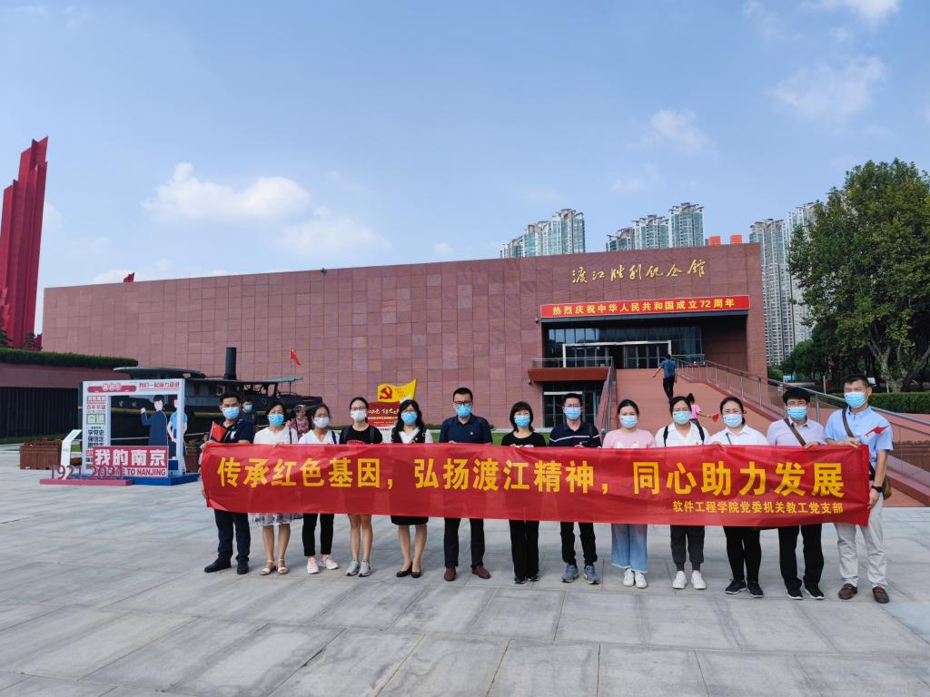 2021年10月5日下午,必赢437官方网站党委机关教工党支部开展了以“传承红色基因,弘扬渡江精神,同心助力发展”为主题的学习活动,支部13名党员前往渡江胜利纪念馆参观学习,缅怀革命先烈,感悟渡江精神。