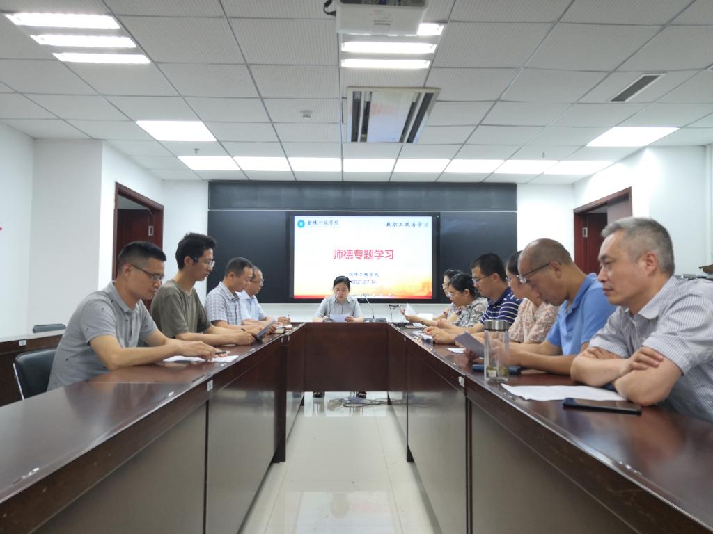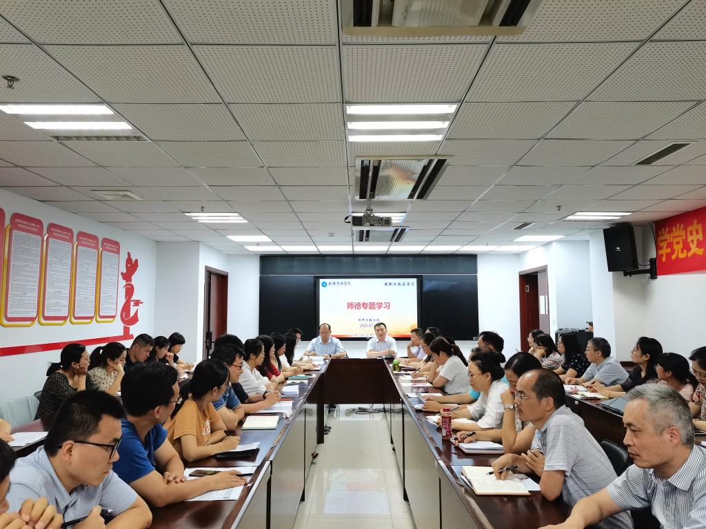 7月14日下午,必赢437官方网站在2-423会议室组织全体教职工开展师德专题集中学习交流会,会议由学院党委书记徐志国主持,全体教职工参加。