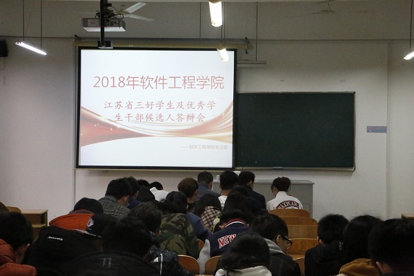 3月23日晚,必赢437官方网站在1202教室召开2018年度省三好学生及优秀学生干部候选人评审会。团总支书记张理航,全体辅导员出席此次会议。团总支学联主要学生干部,各年级班委作为大众评审参与了本次会议。