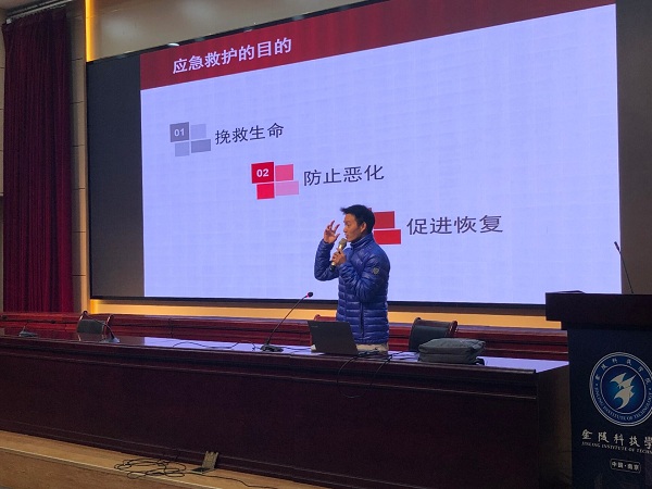 为了增强2020级新生安全突发事故自救知识教育,提高紧急情况自救能力,12月3日,必赢437官方网站在科技楼2号楼报告厅举办心肺复苏急救知识讲座,本次讲座由南京红十字会救护师资库成员、体育部孙浩老师主讲。讲座由孙垒老师主持,新生辅导员张理航、马晓辉及各年级学生干部代表参加。