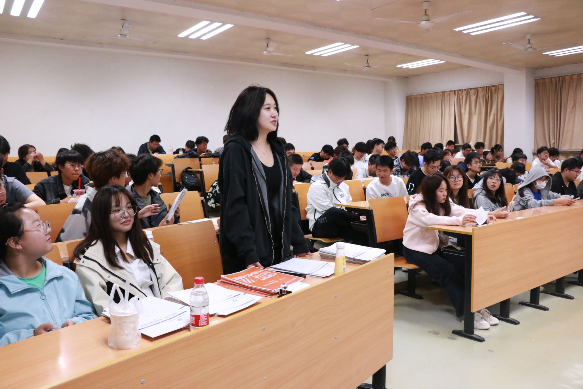 首先,桂文明教授从“什么是人工智能(AI)?”谈起,着重介绍了“文心一言”,本科期间要不要学人工智能、学习的深度和层次作了详细的讲解。接着,董如婵副教授采用举例与演示的形式,向同学们生动展示了ChatGPT的强大功能和人工智能在各领域的广泛应用,怎么学习人工智能之深度学习进行了分享。最后,产昊鹏博士就数字信号处理与遥感图像解译等学习展开交流,并进行了现场展示。活动现场,同学们就“人工智能在医学中的应用、能否代替人类完成艺术类工作、如何避免人工智能失控……”等问题与专家进行互动交流,三位老师深入浅出,一一进行了答疑,现场与学生互动气氛热烈。