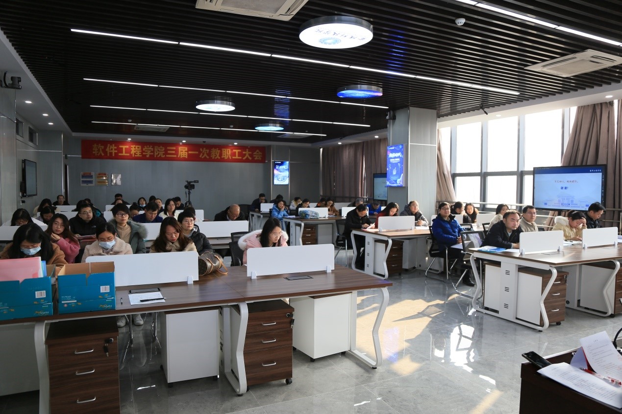 2022年1月19日,必赢437官方网站三届一次教职工大会顺利召开,学院党政领导及全院教工参加了大会。