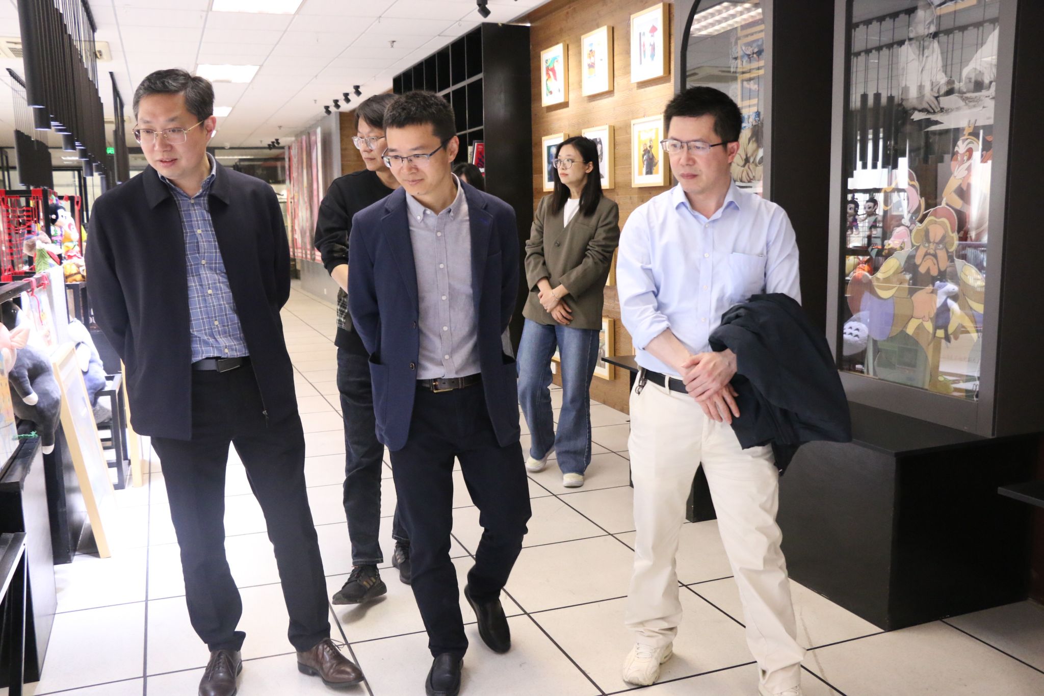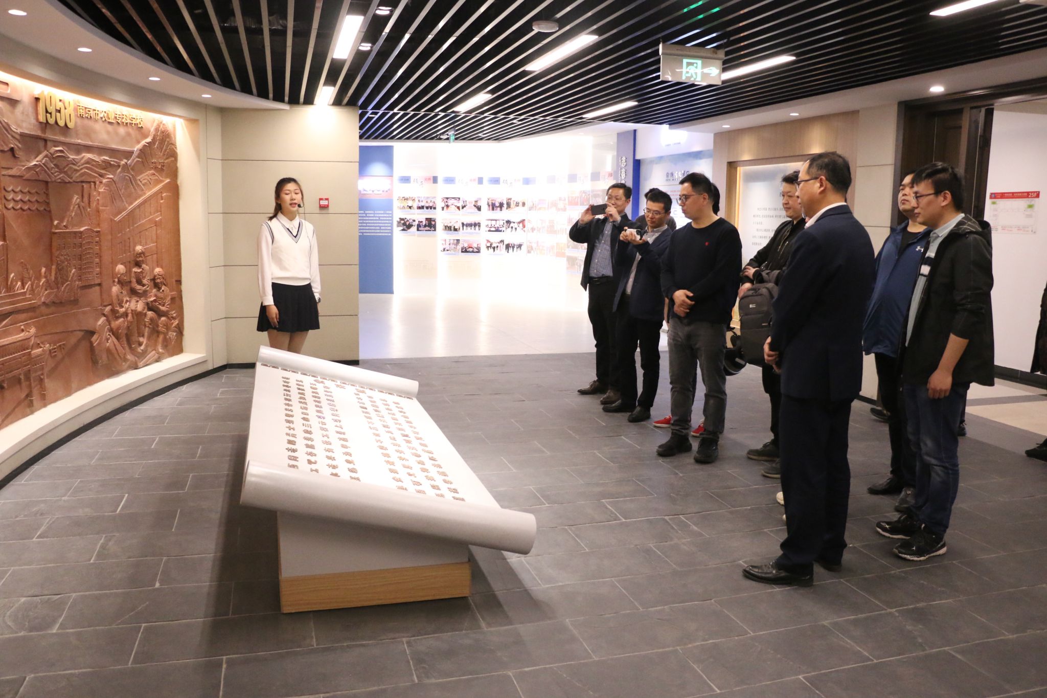 座谈会后,曾岳等一行陪同98级计算机应用与维护专业的校友参观了校史馆和动漫图书馆。