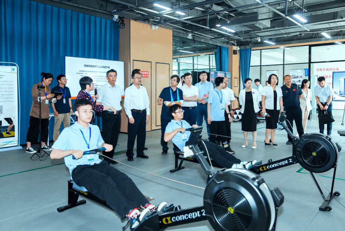 张燕与王雅静为江苏省数字水上运动研究中心揭牌,揭牌仪式结束后,与会领导一行在研究中心现场进行了参观。张燕从研究中心筹建方案、赛艇数字训练系统的设计与实现以及研究中心下一步工作等三个方面介绍了研究中心的建设情况。必赢官网参与研究中心建设的软件学院、体育部、动漫学院和智控学院等数字体育交叉学科老师和同学们,为与会的各位领导现场演示了数字水上运动训练装备以及自主研发的赛艇数字训练系统的运行效果,受到与会领导的一致好评。张燕表示,赛艇数字训练系统的研发与应用将加快推进赛艇运动训练的数字化、网络化、智能化,最终助力运动员科学训练,从而提高运动员的竞技表现。