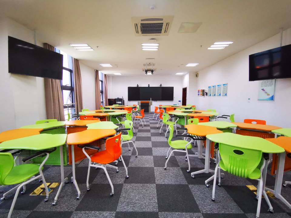 项目开发实验室为智慧实验室,该实验室结合互联网技术等各类教学手段,整合了智慧铭牌、智慧课堂授课、远程互动教学、研讨型翻转课堂、视频会议、课件下发等功能,融合物联网、云课堂等科技于一体,基于“互联网+”流媒体技术同步课堂,为线上和线下并举的混合型教学改革提供了保障和动力。
